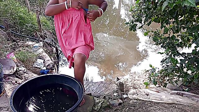 Tamil, Aunt, Bath, Desi